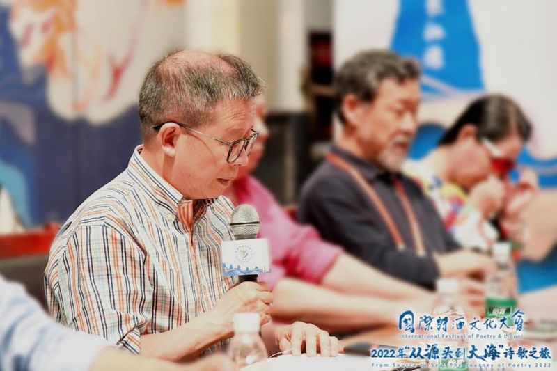 24日上午,著名诗人吉狄马加,著名画家、艺术家岳敏君等多位文艺界嘉宾出席了“2022年从源头到大海:文学与艺术的无国界交流”主题活动;诗人、翻译家树才,文学评论家耿占春,波兰文学翻译家赵刚,俄语翻译家刘文飞,新加坡作家协会名誉主席孙侠,诗歌评论家江弱水,诗人、作家王自亮,青年雕塑家苏豪伟等嘉宾参与交流并就“诗酒文化与城市生活”、“诗酒文化与长江文明”、“中外诗酒文化的比较”等多个议题展开深入讨论。活动由诗人、翻译家,《世界文学》杂志主编高兴主持。