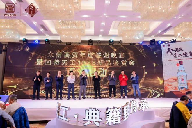 1月14日,“天工匠造 宴遇豫章——众信商贸年度答谢晚宴暨四特天工1988新品鉴赏会”在江西南昌举行。四特酒有限责任公司天工事业部总经理林洪谦、南昌市众信商贸总经理陈林、江西省酒类流通协会秘书长阙英才、江西省餐饮烹饪行业协会会长邓火平、南昌樟树商会会长简铁军及各政府单位领导代表出席本次活动。