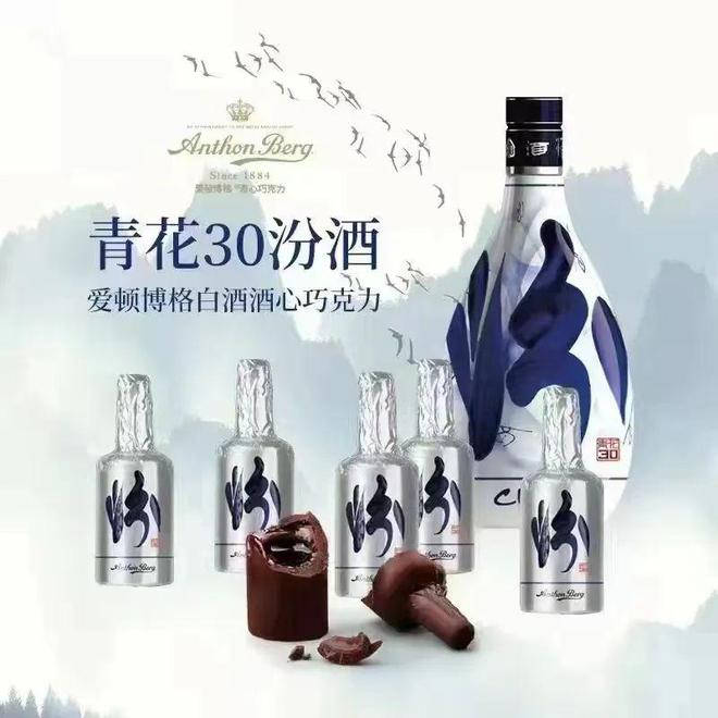 山西汾酒自2018年开启了与格鲁吉亚的文化交流与合作,联合推出了“中格联名酒”,这是“一带一路”倡议建设发展的生动实践。除此之外,2022年初,山西汾酒还与世界知名的丹麦酒心巧克力品牌——爱顿博格携手推出青花30汾酒白酒酒心巧克力。