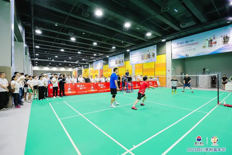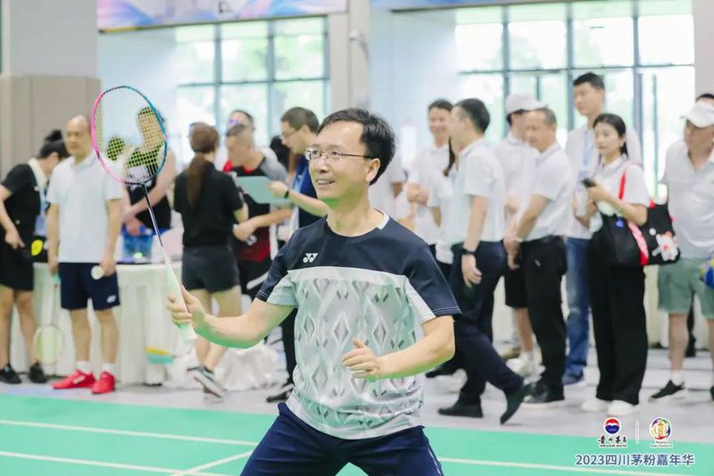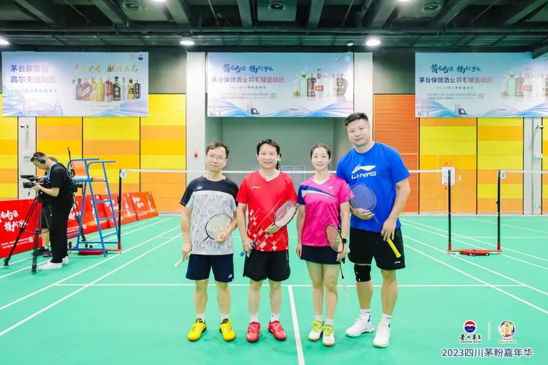 在羽毛球比赛场地内,茅台集团党委书记、董事长丁雄军和茅台集团党委委员、副总经理王晓维分别搭档前羽毛球奥运冠军,捉对厮杀。由央视“名嘴”韩乔生现场解说,精彩的战况引来众多围观群众。