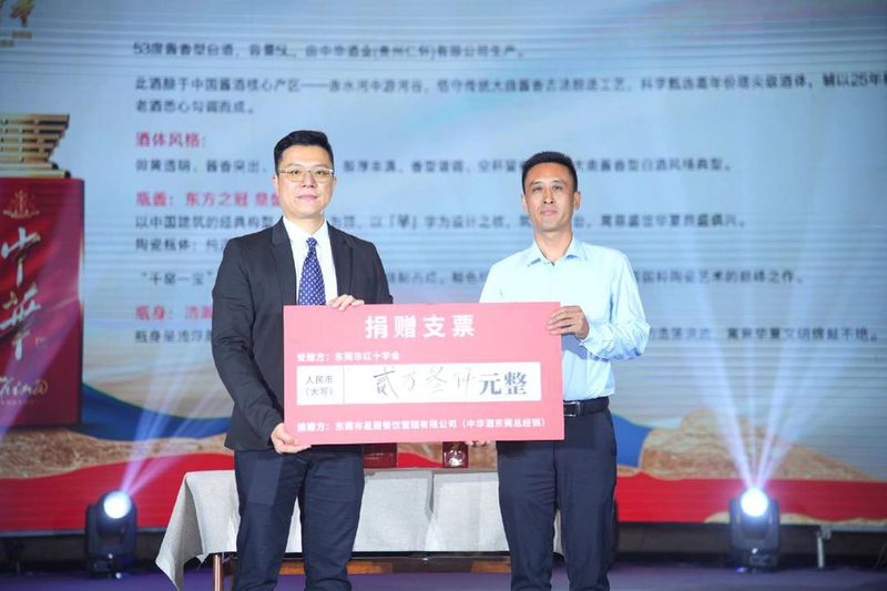 活动现场由中华酒东莞市总经销商东莞市星厨餐饮管理有限公司举行了公益拍卖,拍品为极具收藏价值的10斤装中华酒。为争得拍品的所有权,现场喊价声此起彼伏,最终以23000元被拍得。拍卖所得款项,现场捐赠给东莞市红十字会,将用于社会公益项目。此次公益拍卖,彰显了中华酒的大爱仁心与社会责任感。中华酒将持续开展文化巡礼活动,持续向全世界讲述中华酒故事,共飨酱香美酒。