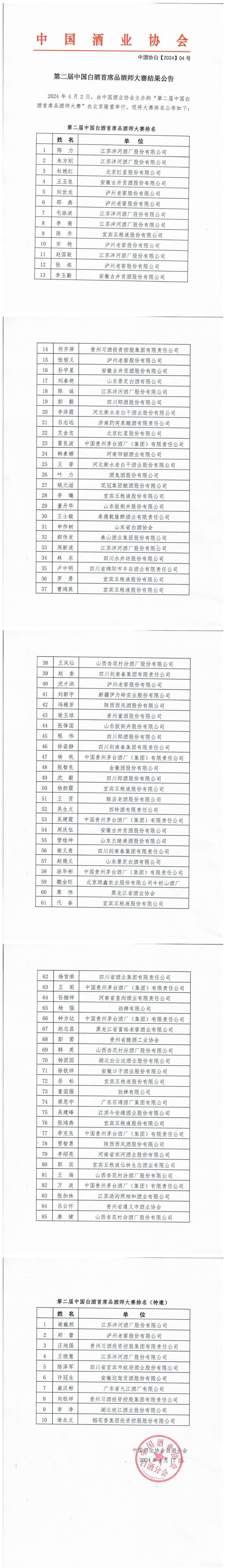 下图为第二届中国白酒首席品酒师大赛结果公告↓↓↓