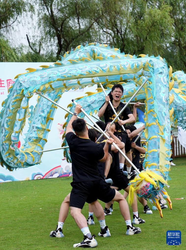 6月10日,参赛选手在龙狮赛高校组的比赛中。