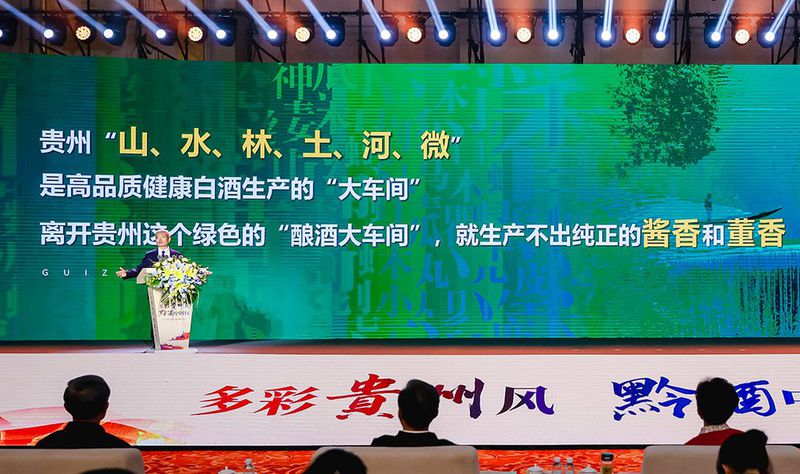 他表示,中国白酒本质就是“大自然的作品”,贵州这片土地上的“山、水、林、土、河、微”就是高品质健康白酒生产的“大车间”。“离开了贵州这个绿色的‘酿酒大车间’,就酿造不出纯正的酱香和董香。”