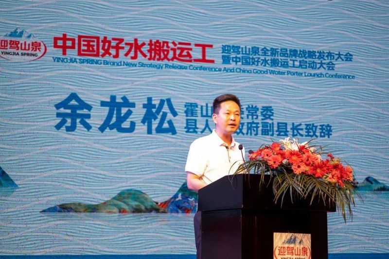 中共霍山县委常委、霍山县人民政府副县长余龙松现场致辞,肯定了迎驾山泉是一个符合生态发展效益的品牌,为助力地方经济绿色发展、实现经济发展和生态保护双赢作出了重大贡献,并寄予迎驾山泉对带动地方产业集群效益的热切盼望。