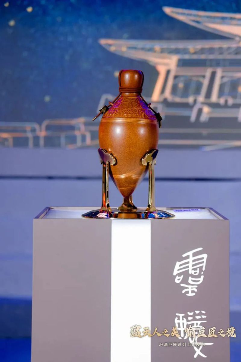 从设计端来看,汾酒巨匠系列配置了一套大师班底。由雕塑艺术名家王艺担纲总设计师,国礼大师葛昊翔以独创“宝石釉”工艺烧制酒器,并与甲骨文设计创始人兼CEO刘文联合共创,承袭中华文明天人合一的五行哲学,以汾酒图腾“小口尖底瓮”为器型基础,重塑视觉符号。
