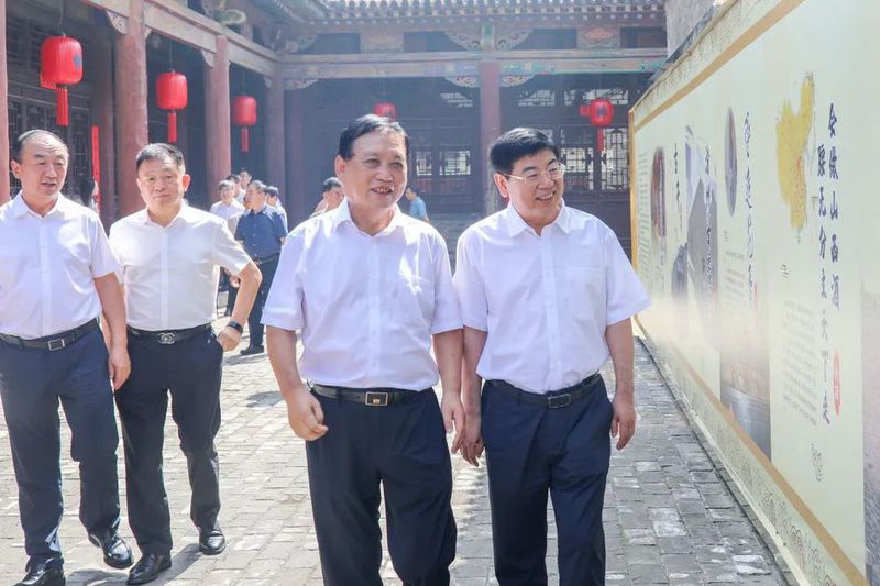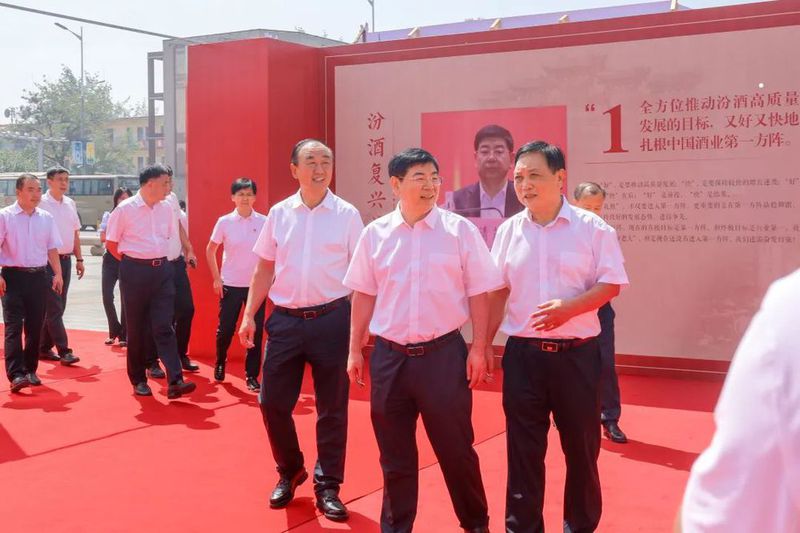 仪式结束后,袁清茂、李秋喜等领导嘉宾共同参观了汾酒老作坊和汾酒文化广场“2022企业文化月”展览。