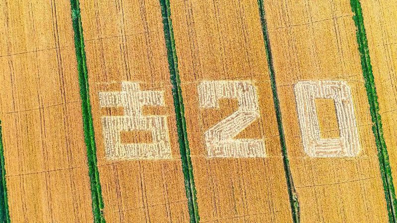 好粮酿好酒!古井贡酒原粮生态基地里,由金黄色的麦子组成的超大古井贡酒“古20”图案呈现,寓意着从“一粒粮到一瓶酒”的珍贵。