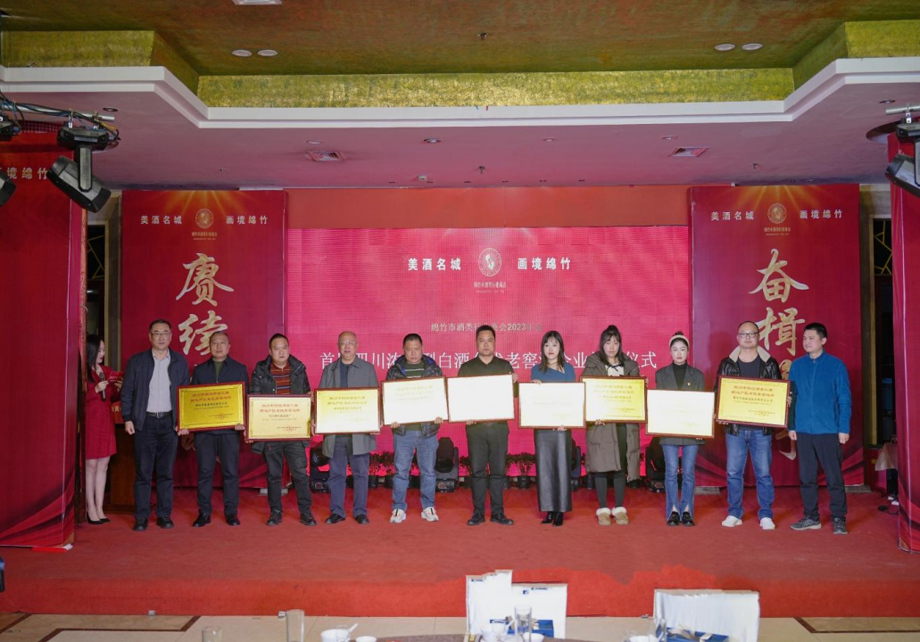 活动期间还举行了“首届四川浓香型白酒名优老窖池”授牌仪式及四川省 2024 届省级白酒评酒委员、四川省省级白酒资深评酒委员颁证仪式。陈大智宣读了协会〔2023〕07号文件《关于公布首届四川浓香型白酒名优老窖池认定结果的通知》,与刁斌等领导嘉宾一起为获得荣誉的20户企业及部分省评委代表颁发了荣誉牌及证书。
