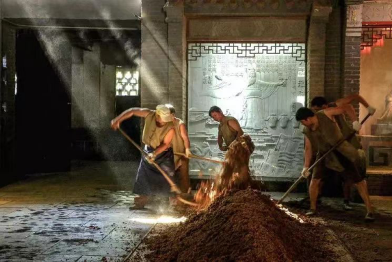 在发酵阶段,曲香四溢的千年窖池中,优质原粮与酒曲充分融合,经过古井无极之水的酿造,再经过陶坛窖藏的自然老熟,使得酒体更加醇厚芳香。