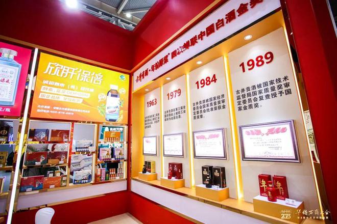 展厅内部,四获“中国名酒”、北魏古井、宋代古井、明清窖池及酒坊遗址等品牌资产交融和谐,向广大客商展示古井贡酒名酒大家族的悠久历史与文化底蕴。