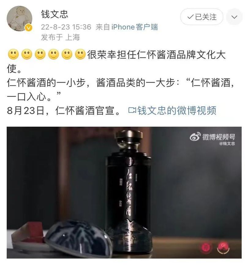 这次与“仁怀酱酒”品牌的合作,是钱文忠先生首次与酒水品牌进行深度的代言合作,对于双方来说,都意味着一次全新的探索,也为整个行业留下了丰富的想象空间。