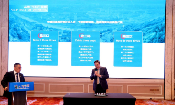 推介活动现场,茅台集团党委副书记、工会主席高山代表参会酒企介绍贵州白酒文化,加深了嘉宾对中国白酒的认知与喜爱。现场,还精心设计了品鉴环节,通过对飞天茅台、君品习酒、珍酒·2013真实年份酒、国台龙酒等白酒产品品评,让海外友人在沉浸式的体验中,领略贵州白酒的独特韵味。