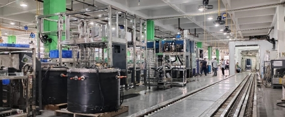 碧涞特高温热泵型自动蒸酒一体机生产车间一角