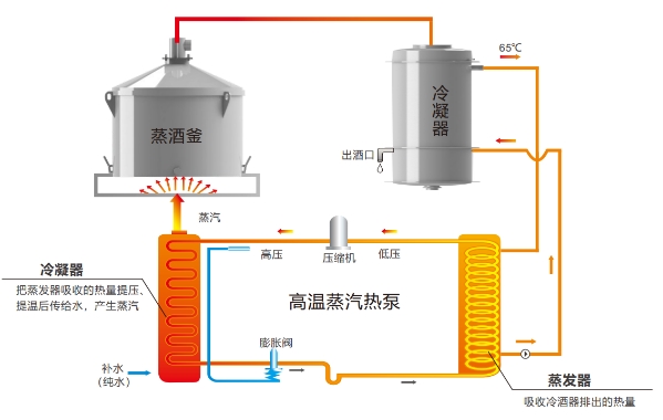 2023年,国家高新技术企业,广东碧涞节能设备有限公司(简称碧涞节能)率先研发出特高温热泵型自动蒸酒一体机。该蒸酒机(酿酒机)采用最新特高温热泵技术,用清洁的电能作为动力,结合传统酿酒工艺,将冷酒工艺中大量的余热回收生产蒸汽和高温热水用于蒸酒、蒸粮和生产打粮水,热能循环利用效率高,是白酒生产企业响应国家和地方政府号召,落实节能减排的首选设备。本蒸酒机(酿酒机)的使用,将为甲方有效降低生产成本,达到节能节水、降低成本、清洁生产的良好效果。