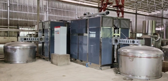 自2023年起,贵州仁怀市茅台镇已有数家酱香型白酒生产企业使用广东碧涞节能设备有限公司研发生产的特高温热泵型蒸酒一体机做白酒的蒸粮、蒸酒及打粮水的生产,取得非常好的节能减碳的效果。采用该机组生产白酒,相比天然气锅炉生产节省成本50%以上,相比电锅炉(电蒸汽发生器)节能60%以上。