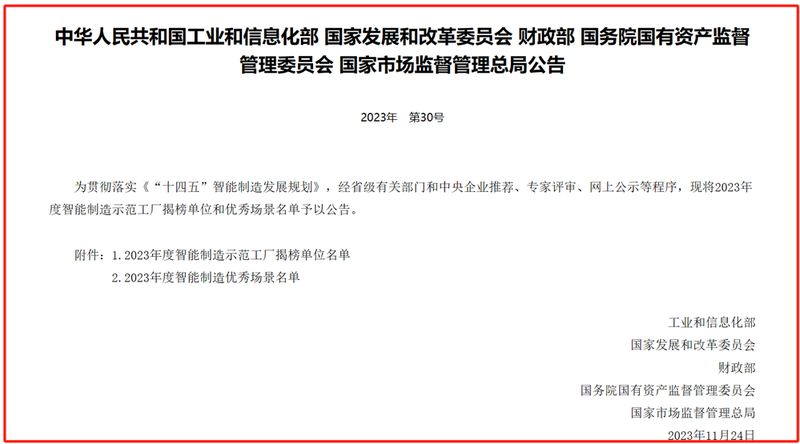 贵州国台酒业集团获评“2023年度智能制造示范工厂”揭榜单位,成为贵州白酒首家国家级智能制造示范工厂揭榜单位。