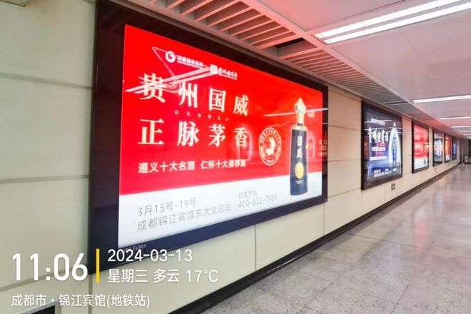 此外,在成都的关键交通节点,如天府国际机场、高铁站以及人流量庞大的锦江宾馆地铁站等地,国威酒业进行了从地面到空中、从陆地到地下的一整套立体化广告投放计划,形成了“点、线、面”全方位的宣传攻势。这一连串强有力的市场动作,如同一场春季糖酒会的品牌风暴,为国威酒业积聚了强大的品牌动能。