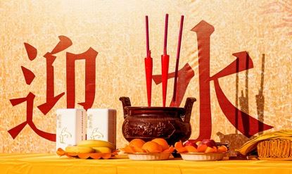 迎接圣水环节,迎水官率领众人完成焚香发烛、献礼奠帛、敬香叩首、敬酒酬神、冥钱焚帛等仪式,恭迎圣水送达主祭台香案。