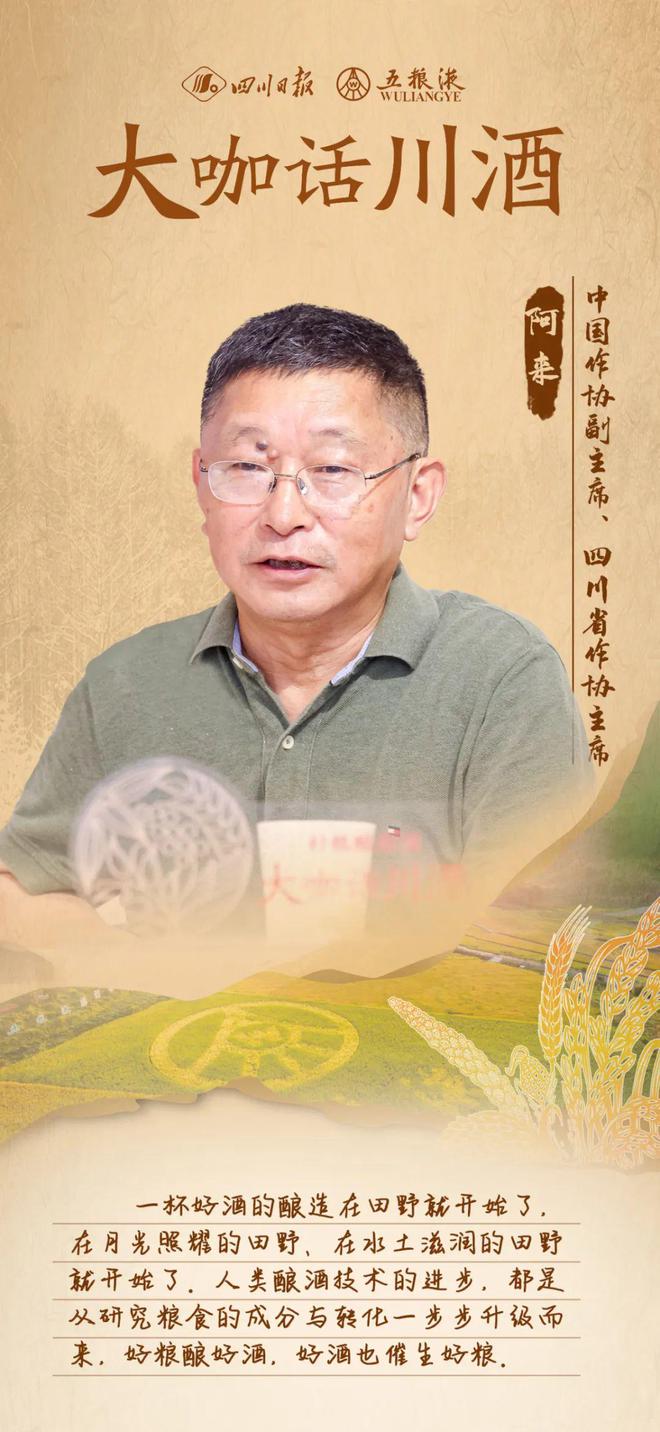 中国作协副主席、四川省作协主席阿来在专题讲座中表示,“酒与文同兴,酿酒史也是文明史。人类酿酒技术的进步,都是从研究粮食的成分与发酵转化中一步步升级而来,好粮酿好酒,好酒也催生好粮。”