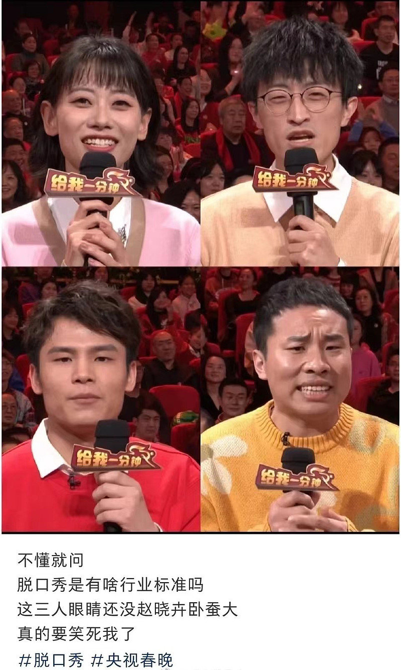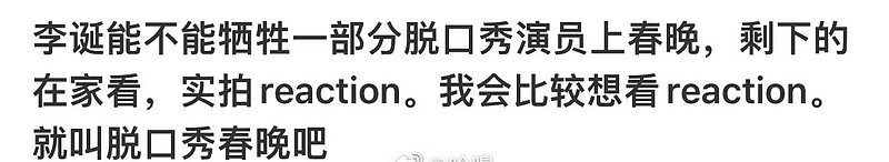 “看脱口秀演员上春晚,感觉就像在作为底下跟同桌聊得嘎嘎乐,然后突然被班主任拎到讲台上说,来,对着全班再讲一次。”网友的这条微博获得了16.8万的点赞。