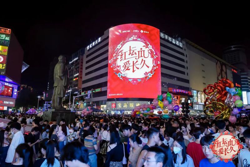 “520”这天,酒鬼酒联合湖南卫视、红网一同在长沙网红打卡点举办了以“红坛Jiu 爱长久“的线下霸屏表白活动。作为连续两年携手湖南卫视《中国婚礼》的中国式幸福见证者,酒鬼酒再成为这一波霸屏表白活动的深度参与者,同时也以创新营销为破局锚点,再一次让行业看见了红坛酒鬼这支婚宴市场突围奇兵的长效动能。