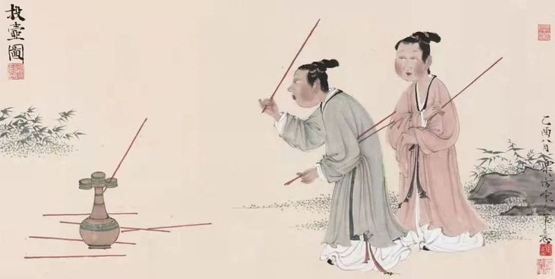 酒令也称 行令饮酒 ,是中国人饮酒助兴的一种传统方式,它既是一种调和饮酒气氛的娱乐方式,又是一种文化展现形式。在古代,酒令的形式有很多种,有 赌赛令、射覆令、花枝令、文字令、诗歌令、酒筹令 等等,在饮酒过程中, 赋诗填词、猜谜行拳、投壶 ,增加游戏性和娱乐性。