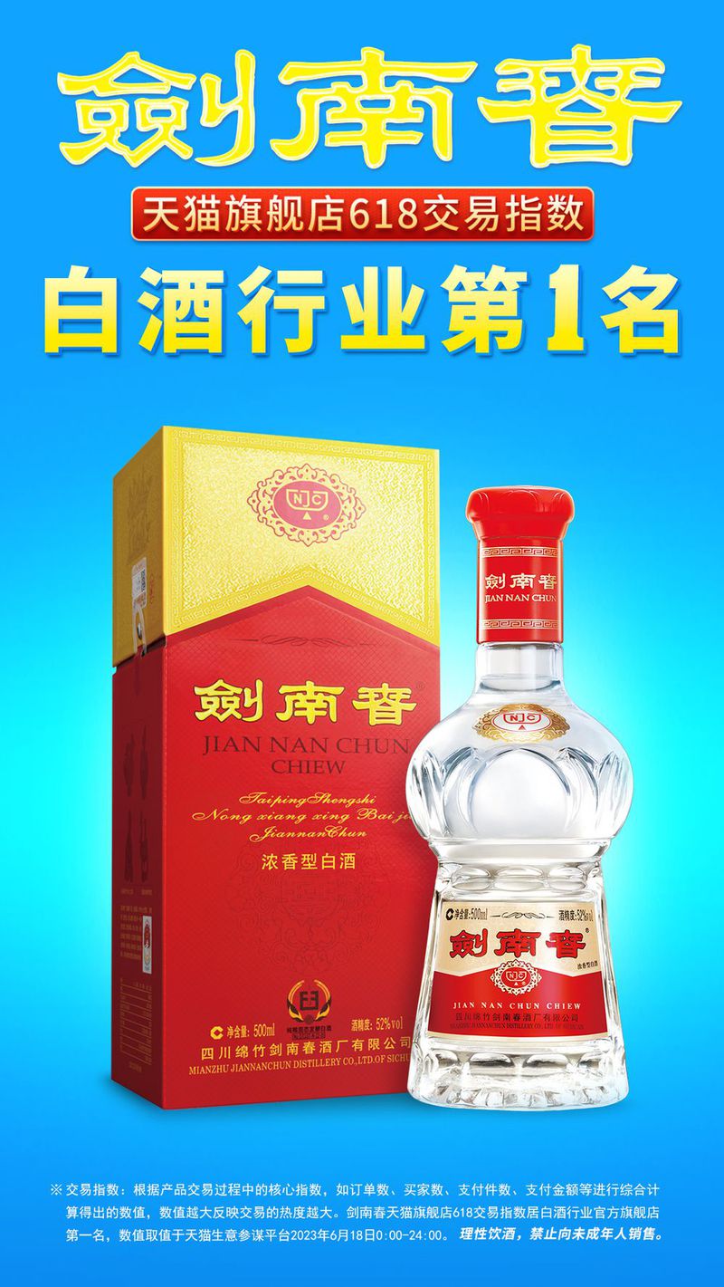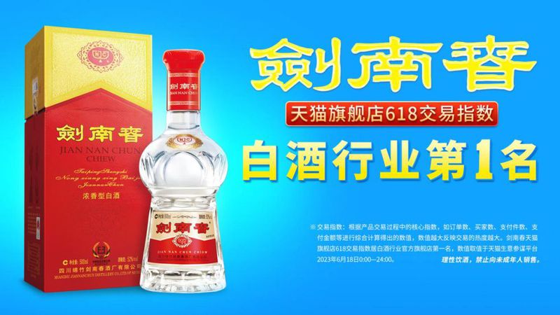 据电商平台披露的数据显示,京东超市618开门红前28小时,酒类商品成交额同比增长100%,其中剑南春销售额同比增长3.5倍。而淘宝天猫618开门红4小时,天猫白酒类目表现强劲,销量同比增长56%。已经连续三年夺得天猫平台白酒行业品牌官方旗舰店交易指数第一名的剑南春,今年不负众望,继续夺魁,创下四连冠的佳绩。