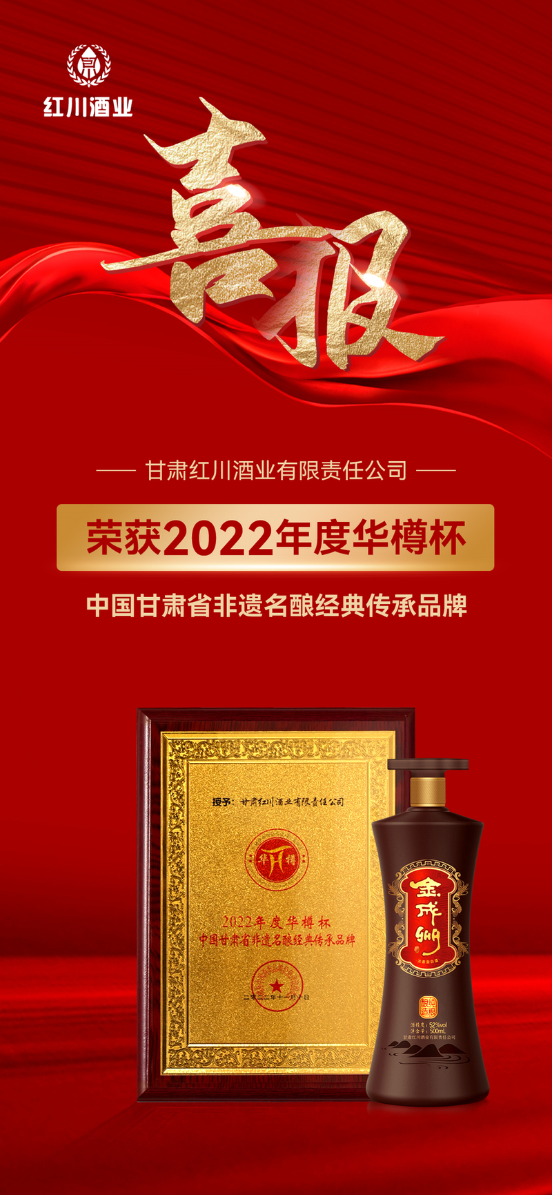 2017年10月,“红川酒酿造技艺”被甘肃省人民政府列为“第四批省级非物质文化遗产保护名录·第八项传统技艺项目”;2022年11月,在“华樽杯”第十四届中国酒类企业品牌价值暨第五届国际酒类产品品牌价值发布会上,被中国酒类流通协会评为“非遗名酿经典传承品牌”,红川酒业在非遗之路上结出的硕果已经广受关注,在甘肃乃至全国白酒市场上,通过“非遗牌”让品牌不断增光添彩、焕发生机。