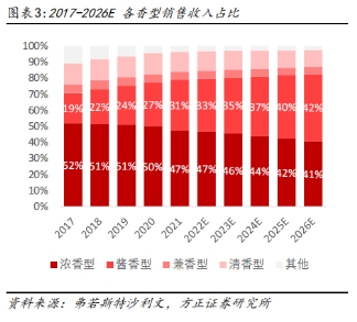 酱酒之所以能备受青睐,其品质是核心因素。一方面酱香型白酒的品质高度依赖于区域,而赤水河产区资源、原料资源稀缺,产量较小,进一步强化了其稀缺属性;另一方面酱香型白酒的生产工艺复杂,既需要顺应粮食生产周期和当地气候变化,也需要严格执行“12987”工艺,讲究“三高三长”。复杂的工艺和漫长的生产周期,无疑打造了酱香白酒的独特竞争力。