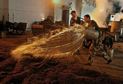 高温制曲是酱香型白酒酿制特有的工艺,制曲温度比其他香型白酒要高十几度。大多数酒厂选择在端午节气温较高时开始制曲,因为夏季的温度高、湿度高、微生物的种类和数量比较多。
