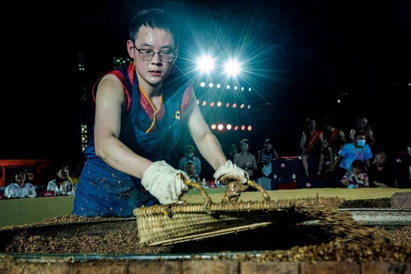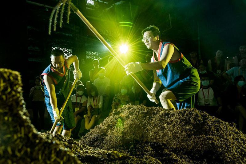 6月27日,2022泸州老窖“怀玉杯”酿酒技能大赛在持续449年酿造生香的1573国宝窖池群内精彩上演,两位酿酒师以攻擂和守擂的方式,展开泸州老窖酒传统酿制技艺巅峰对决。