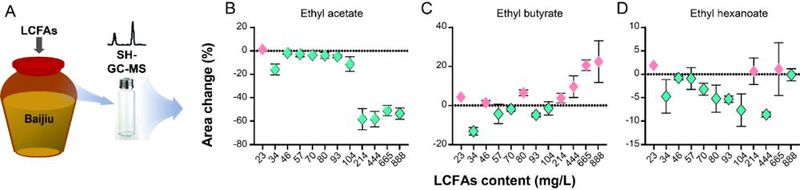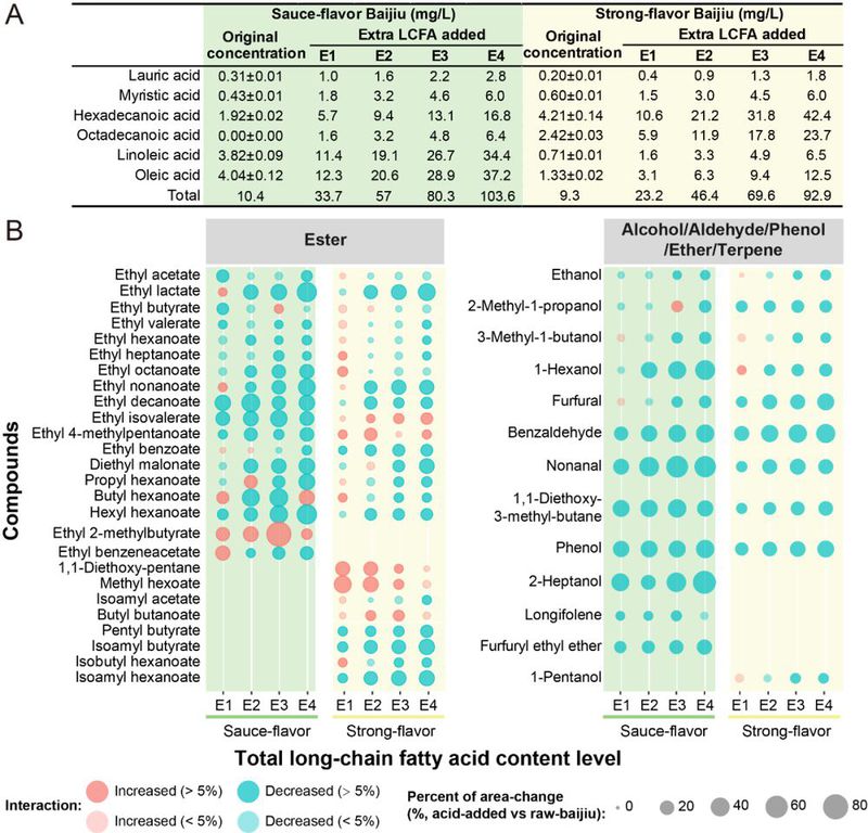 本研究系统地解析了长链脂肪酸类化合物对白酒代表性乙酯类化合物的影响机制,明确了长链脂肪酸对于白酒感官品质的重要作用,可为酒体设计提供重要依据。