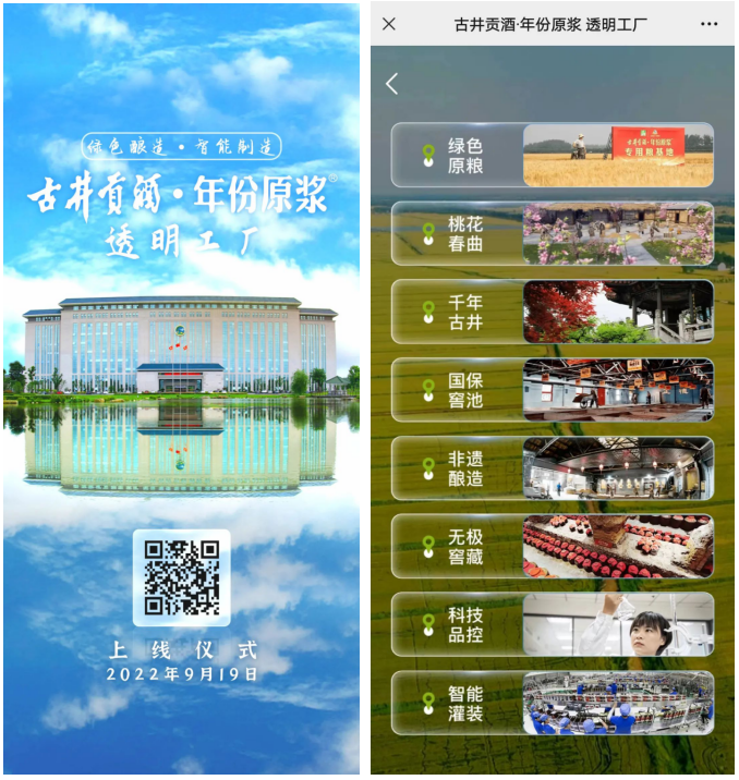 “透明工厂是集慢直播、虚拟现实场景、视频播放、游戏互动、线上直播、古井产品品质溯源于一体的线上透明平台,服务消费者“云调研”车间一线。”