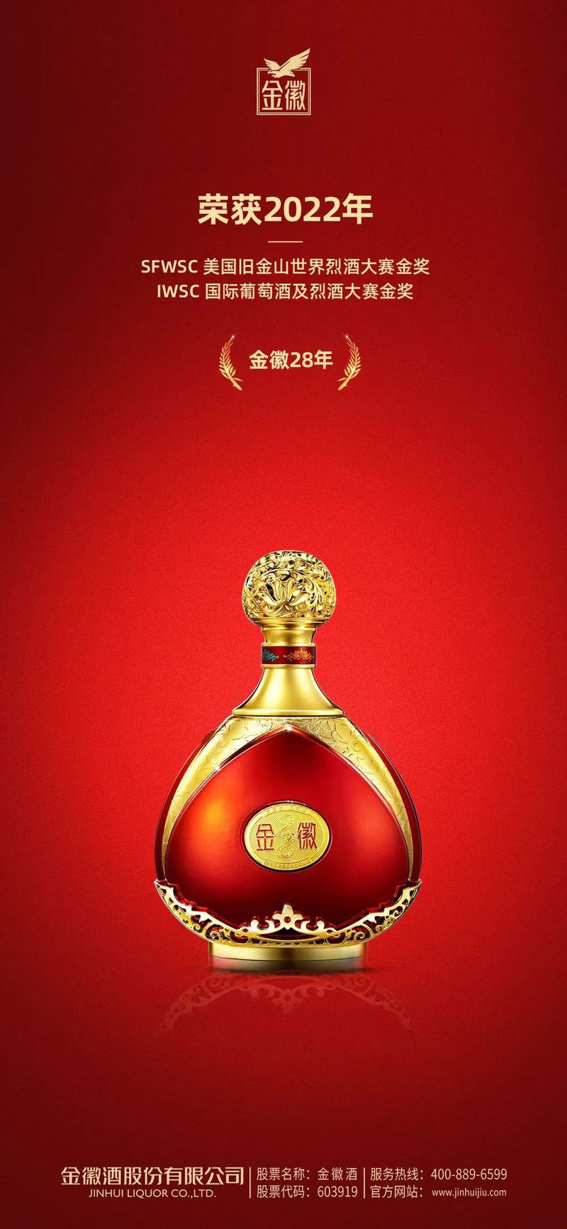 近日,2022国际葡萄酒及烈酒大奖赛(IWSC)、美国旧金山世界烈酒大赛(SFWSC)两项国际烈酒赛事已圆满落下帷幕!金徽酒在世界舞台上与数千款世界烈酒同场竞技,金徽28年,金徽18年获得IWSC金奖;金徽28年,柔和金徽H9,金徽正能量1号获得SFWSC金奖,其中金徽正能量1号获得SFWSC双金奖。这是继2018金徽正能量1号酒荣获比利时布鲁塞尔国际烈性酒大奖赛金奖后,公司旗下产品再次摘得国际重磅奖项。