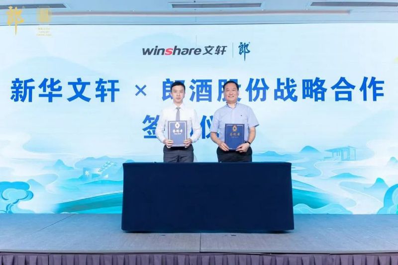 ▲郎酒股份副董事长汪博炜(左)与新华文轩总编辑陈大利(右)签署战略合作