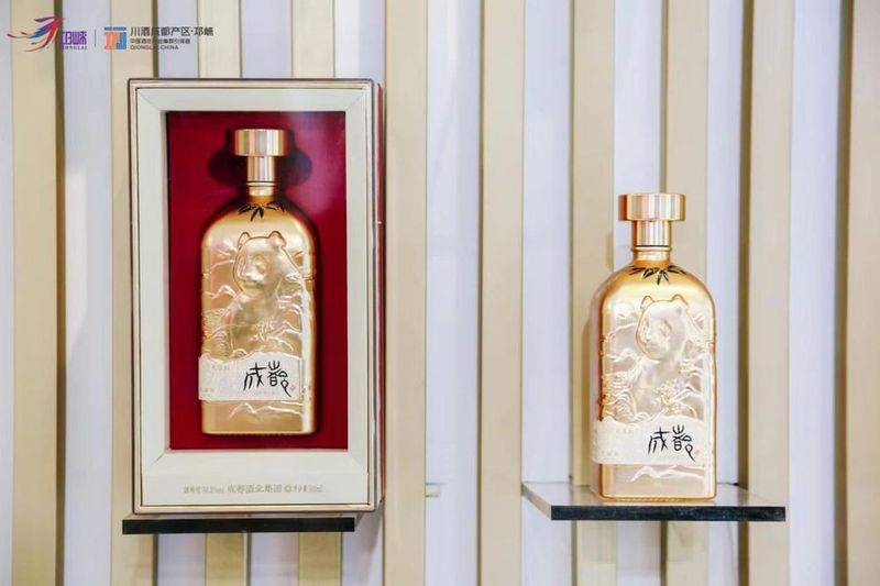 而高端款“成都2300”则以成都市标的太阳神鸟为元素,整体瓶身金色华贵,搭配主视觉的熊猫主体元素,融入邛崃的群山流水,此外,瓶标上的成都地图进一步凸显出成都元素,于高贵典雅中彰显中式经典。
