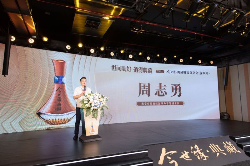 淮安市政府驻深圳办事处副主任周志勇发表致辞。他说,江苏淮安文化底蕴深厚,而今世缘酒业作为淮安的杰出代表,此次在深圳举办今世缘·典藏财富尊享会(深圳站),不仅体现了对深圳市场的重视,也彰显了淮安与深圳之间日益密切的交流与合作。