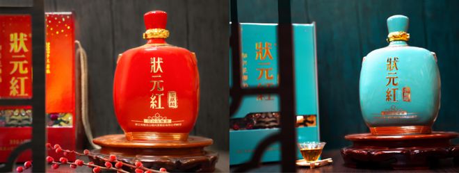 状元红·金麒麟和状元红·玉麒麟,分别采用最具中国传统底蕴的中国红和天青色为主色调,瓶身以麒麟图案点缀,赋予产品人生圆满、功成名就的美好寓意。