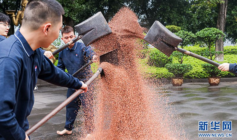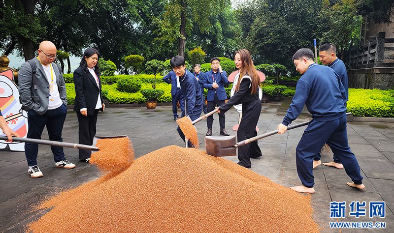 10月11日,参加茅台酒节的嘉宾在茅台中国酒文化城体验“下沙”工艺。新华网 卢志佳 摄