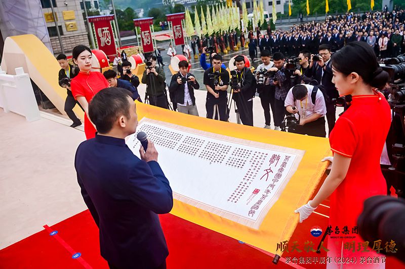 10月11日,茅台人恭读《甲辰年 2024年茅台酒节敬文》。