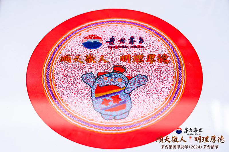 10月11日,用贵州水族马尾绣绣成的茅台“小茅”形象。