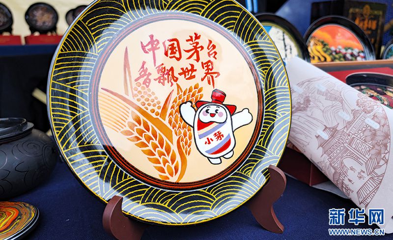 10月11日,以贵州大方漆器工艺制作的茅台“小茅”形象漆器圆盘。新华网 卢志佳 摄