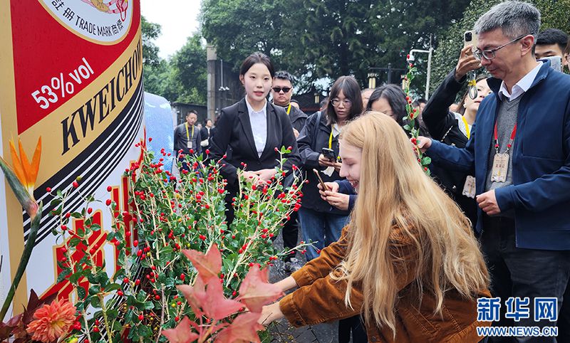 10月11日,参加茅台酒节的嘉宾在茅台中国酒文化城参观打卡。