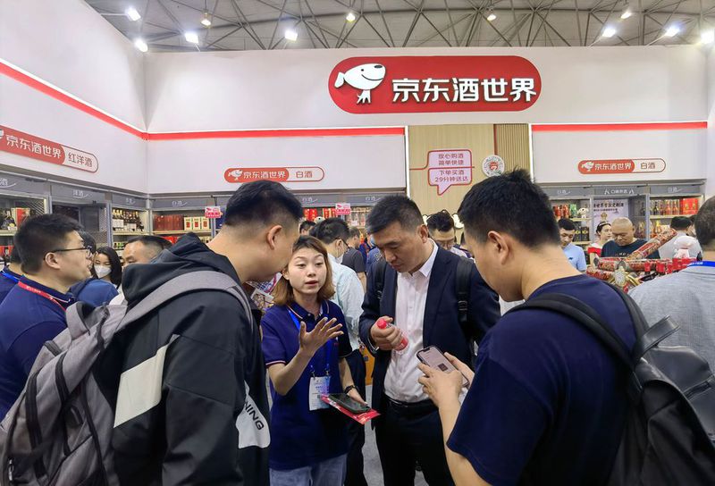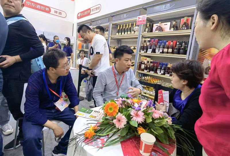 一经开展,“进店打卡”的观众便络绎不绝,京东酒世界展区内全天挤满了前来询洽的客户,各地区域经理为探展观众提供专业贴心的接待与咨询服务,人流高峰期甚至排起长队咨询。观众也可以借助展台内外的电子大屏,直观了解到京东酒世界线上线下一体化模式带来的29分钟极速达、系统化门店运营、创新特色化门店服务等优势。