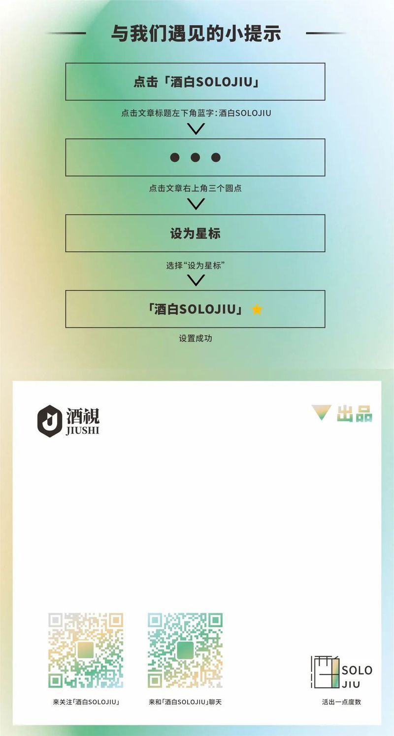 *「酒白SOLOJIU」致力于为当代酒文化爱好者提供顶级先锋有趣的原创内容,如需转载,请点击菜单页面查阅【转载授权】,图文(平面设计)均为我司原创,侵权必究。