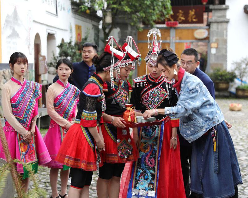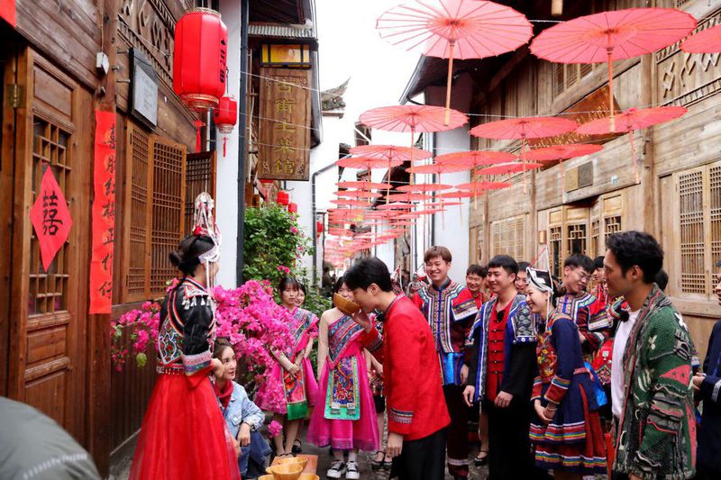 惊喜官袁弘和新人们一同体验畲族“长桌宴”