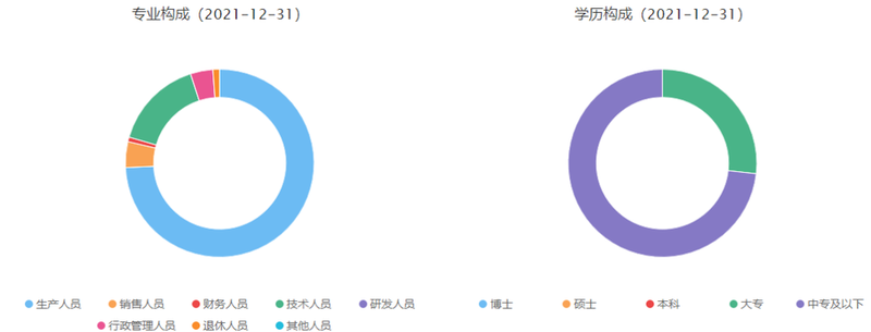 所以导致最近很多高校生选择考公务员和考研,毕竟国企和央企的工作稳定性强,福利高有很大吸引力。可以看到贵州茅台的人员组成,主要是由生产、销售、财务、技术、研发、行政管理、退休、其他等8个类别组成,而从这8类职业来看,生产和销售人员,对学历要求相对低,技术和研发人员对学历要求较高。并且从上市酒企的员工学历组成来看,市值头部还有发达地区的酒企,高学历人才占比要更多。