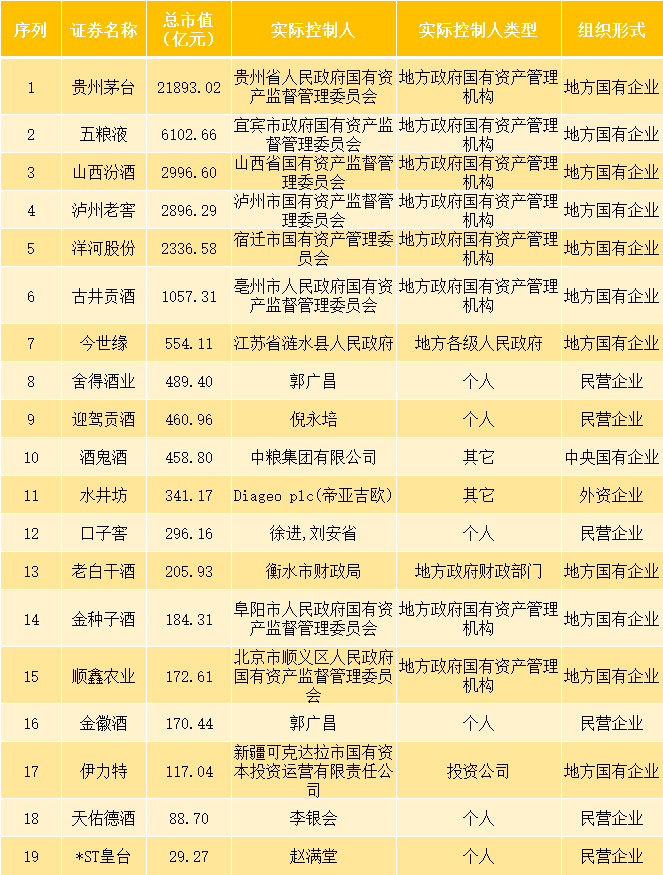 回到酒行业,我们发现白酒的19家上市公司的实际控制人,绝大多数都是国资委背景,实力雄厚,妥妥的国企好单位。