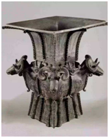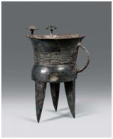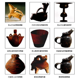 新石器晚期,夏朝大禹以后时期,陶器已有很大的进步。 兼具烧成技术与造形之讲究了。在龙山文化时期的出土遗物中,发现有冶钢制品,包括了酒器,证明夏朝时也已有青铜制品的酒器,至殷商时期,是我国青铜器大发展之时期,在商代文化遗址中,如郑州的商城,黄坡的盘龙城和安阳小屯的殷墟中,都发现了青铜酒器,如 觚、爵、觯、斝、尊、卣、壶、觥、罍、盉 等。